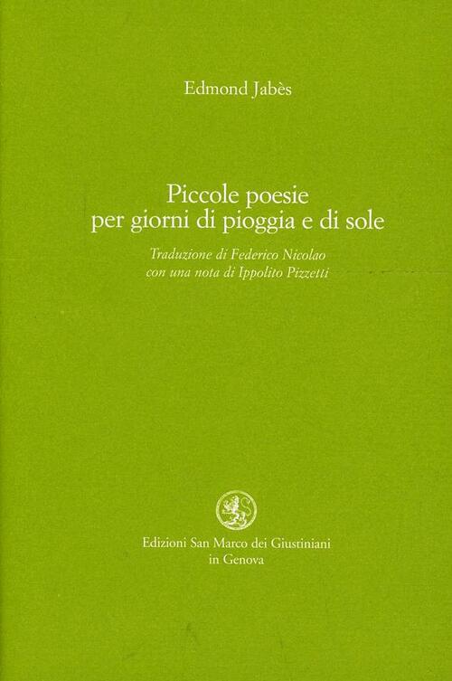 Piccole Poesie Per I Giorni Di Sole E Di Pioggia Edmond Jabes Libro Libraccio It