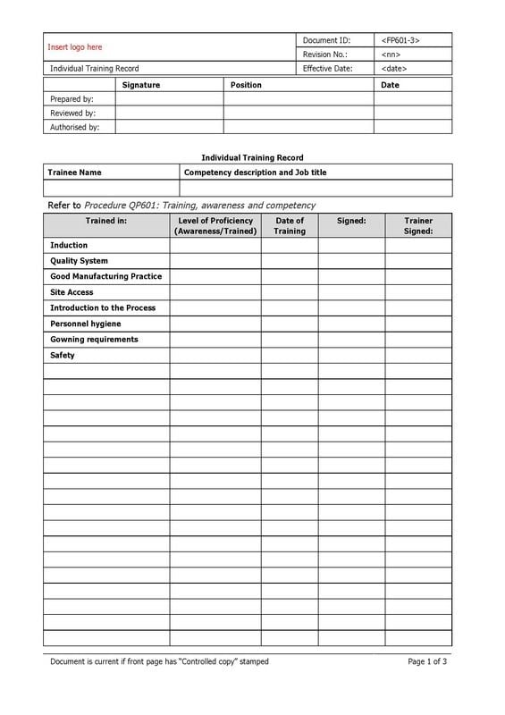 Individual Training Record Iso Template