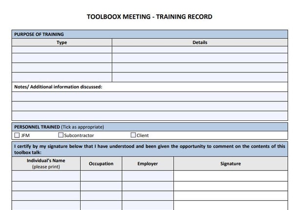 Toolbox Meeting Training Record