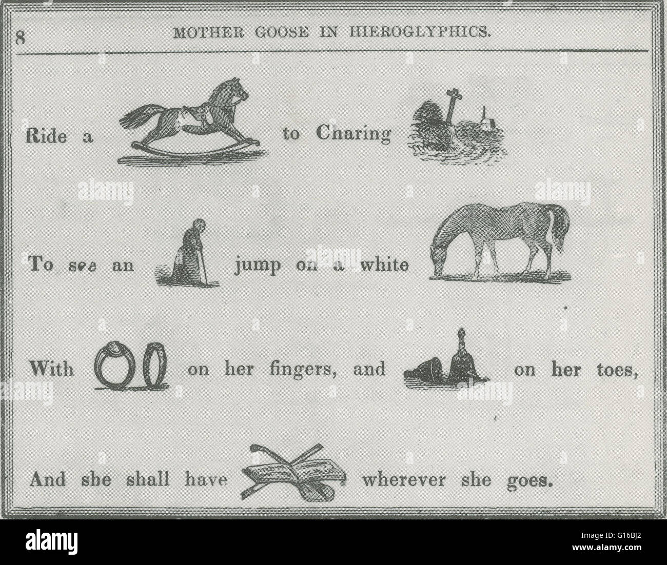 Mamma Goose In Geroglifici E Un Libro Per Bambini Da E F Bleiler Originariamente Pubblicato Nel 1849 Il Libro Offre Ben Noto Filastrocche Scritto Con Immagini Circa 400 Xilografie Dettagliata Sostituendo Alcune Parole