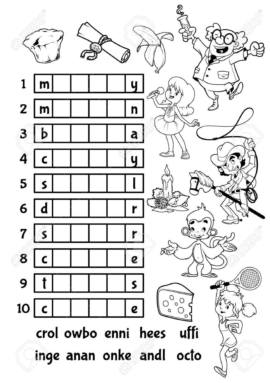 Vettoriale Gioco Vector Rebus Per I Bambini In Eta Prescolare Con Facile Livello Di Gioco Educativo Per L Educazione Bambino Durante Il Gioco Trovare Soluzione E Scrivere La Parola Nascosta In Celle
