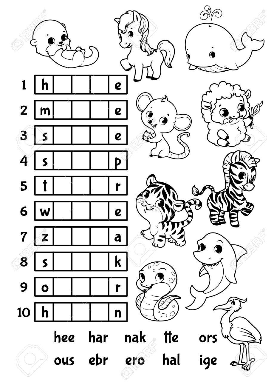 Vettoriale Gioco Rebus Educativo Con Simpatici Animali Per I Bambini In Eta Prescolare Trova La Parte Corretta Delle Parole Illustrazione Vettoriale Cartone Animato Image