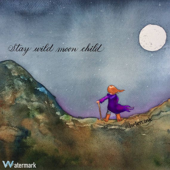 Watercolor Stay Wild Moon Child Etsy