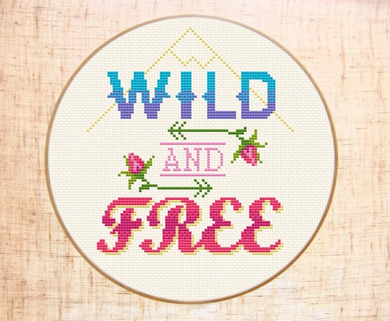 Wild And Free Cross Stitch Pattern Modern Quote Cross Stitch Etsy