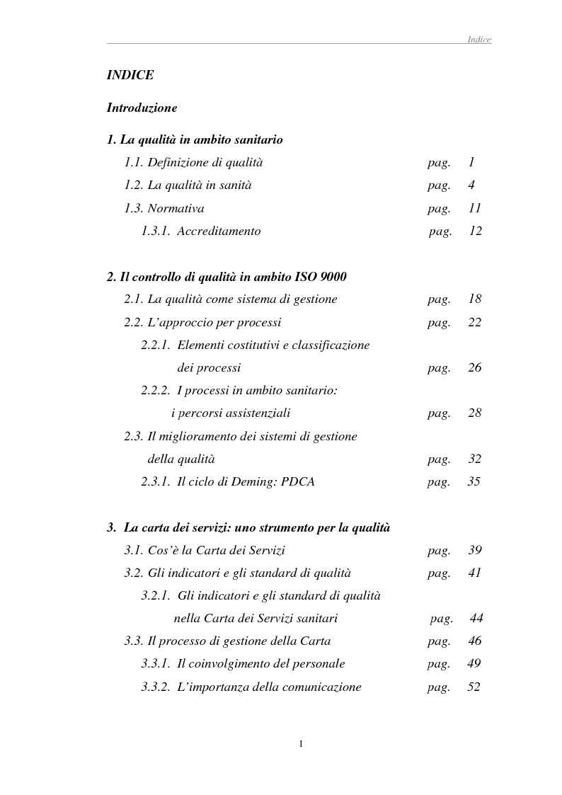Il Controllo Di Qualita In Una Struttura Sanitaria Attraverso L Adozione Della Carta Dei Servizi E La Customer Satisfaction Indice Pagina 1 Di 3