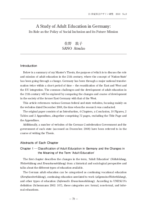 Pdf A Study Of Adult Education In Germany Its Role As The Policy Of Social Inclusion And Its Future Mission Atsuko Sano Academia Edu