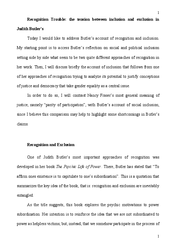 Pdf The Tension Between Inclusion And Exclusion In Judith Butler S Work Ingrid Cyfer Academia Edu