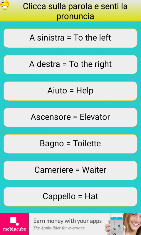 Compound Forms/Forme composte Italiano Inglese attaccare il cappello hang up your hat⇒ vi intransitive verb Verb not taking a direct objectfor example, "She jokes" "He has arrived" (idiom)get your feet under the table v expr verbal expression Phrase with special meaning functioning as verbfor example, "put their heads together," "come to an end". Non mi piaceva l’idea di iniziare lezioni di inglese. Pronuncia della vocale /ɒ/, usata nella pronuncia britannica, come ɔ Coloro che intendono imitare la pronuncia americana approssimano il corrispettivo americano /ɑ/ con a̠ Pronuncia non aspirata delle consonanti occlusive /p t k/, che in inglese sono regolarmente aspirate in sillaba tonica.