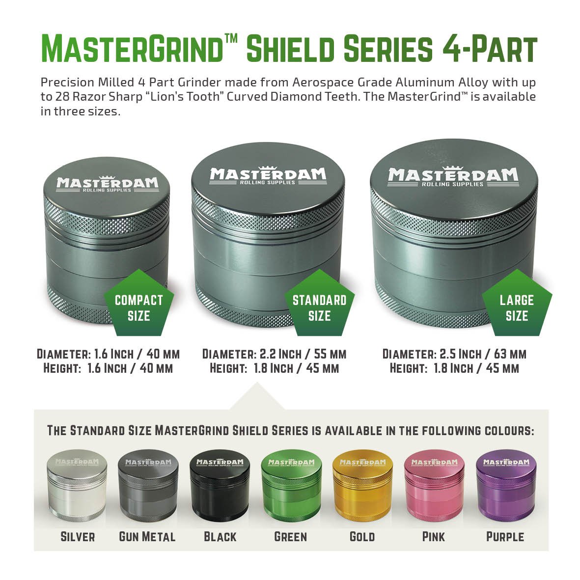 Lingua Inglese Mastergrind Serie Shield Metallo Colore Grigio Spezie Macina Erbe Con Micron Schermo Per Erbe Standard 4 Sezioni Alluminio In Alluminio 2 2 Inch Di Precisione Escuelasoulsurf Cl