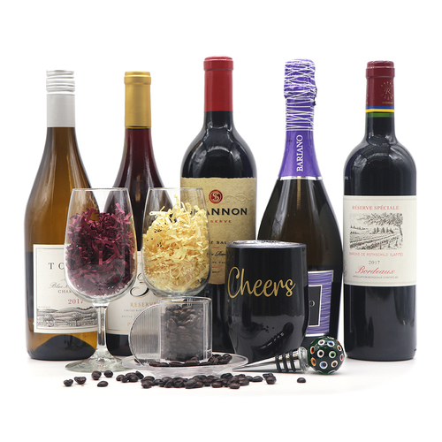 With a beautiful bottle of wine that can be upgraded or customized from our extensive beer, wine, and liquor collection, this gift basket is perfect for pampering someone special Featured in this basket are gourmet three. Additionally, each Wine Lover's Gift Basket also comes with a curated collection of cheeses, crackers, cookies, candies, truffles, popcorn, and pretzels, packaged along with the wines in a 14inch Roosevelt Faux Leather Tote Basket making it a truly lavish treat that is guaranteed to put a big smile on your recipient’s face. Create a wine gift basket that contains a bottle or two of wine and some of our small accessories, such as the magnetic drinkware charms, cute coaster set or a red wine stain remover kit.