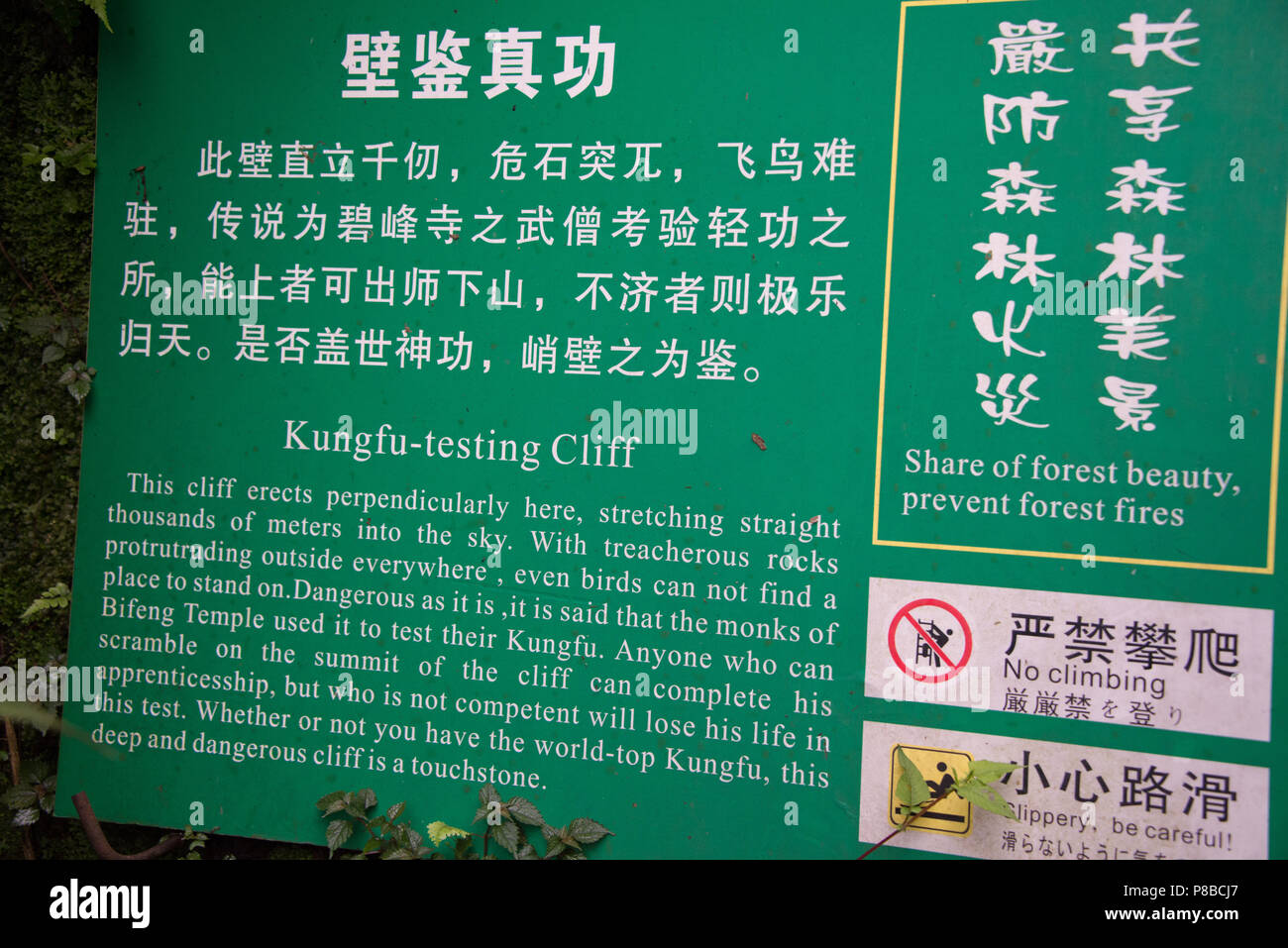 Cartelli Di Segnalazione Cinese Tradotto In Inglese Con Informazioni Sulla Storia Antica A Bifengxia Noto Anche Come Il Blue Mountain Canyon Foto Stock Alamy