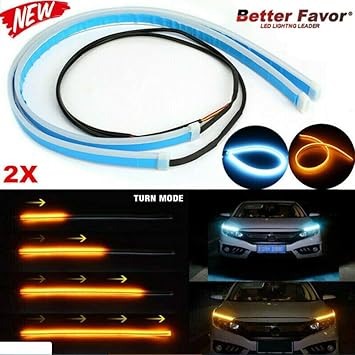 Guida Per Fari Auto Guida Barra Luminosa Streamer Angolo Di Sterzo Luce Di Marcia Diurna Luce Di Striscia Flessibile Con Sopracciglio Della Lampada Del Faro Giallo 60 Amazon It Auto E Moto