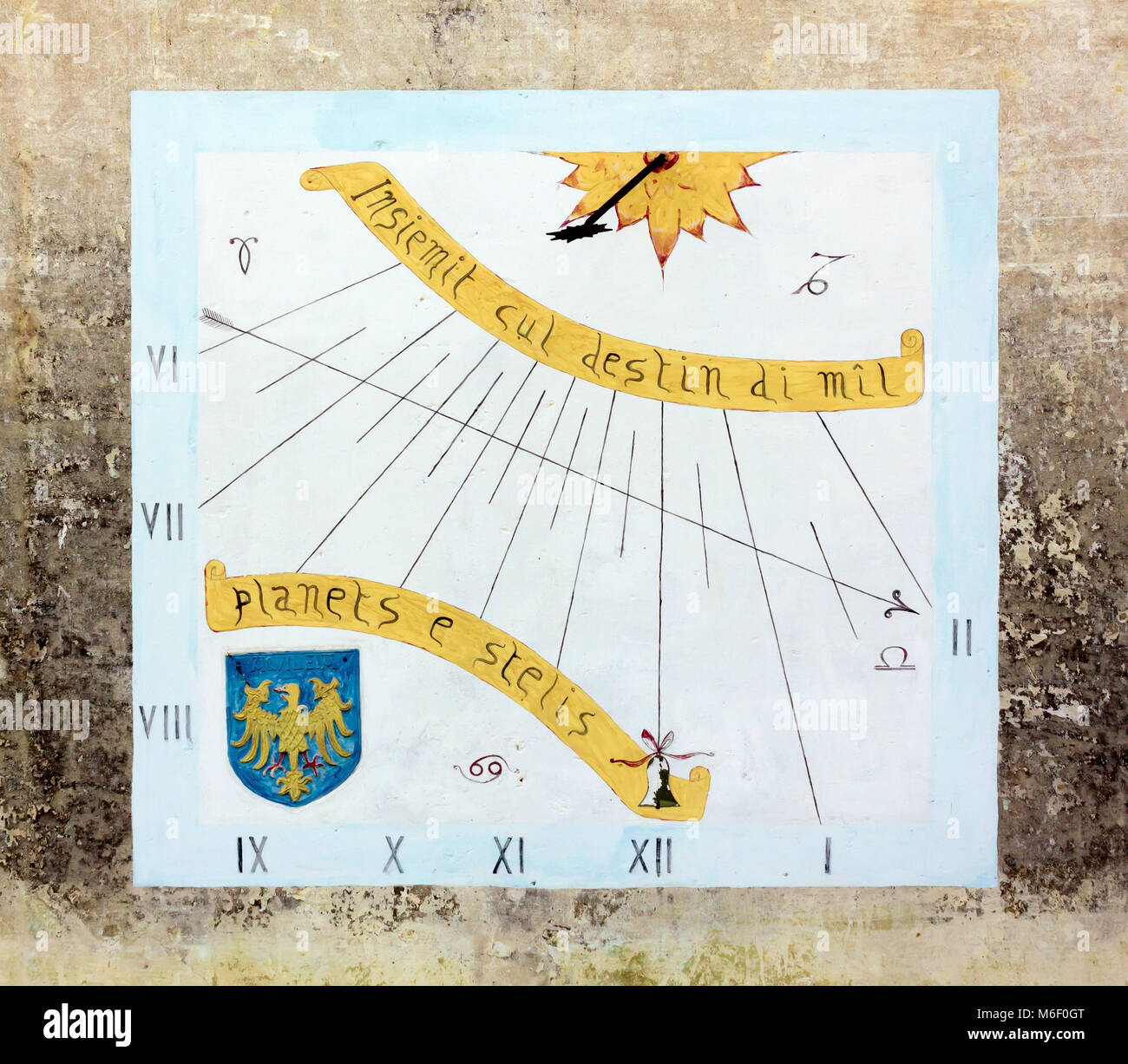 Aquileia Italia 10 Maggio 17 Meridiana Su Un Vecchio Edificio Della Parete Esterna Con Segni Zodiacali In Aiello Del Friuli Italia Foto Stock Alamy