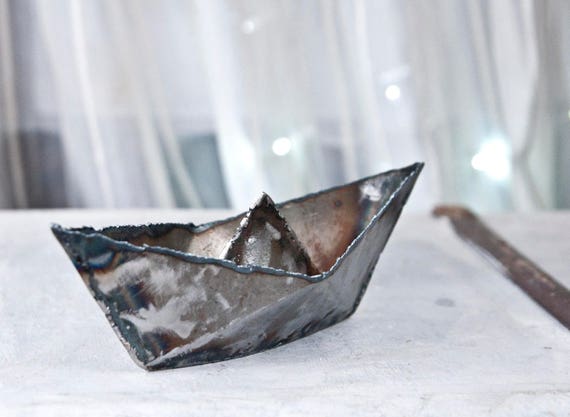 Barca In Metallo Origami Barca Di Carta Saldato Ferro Arte Etsy