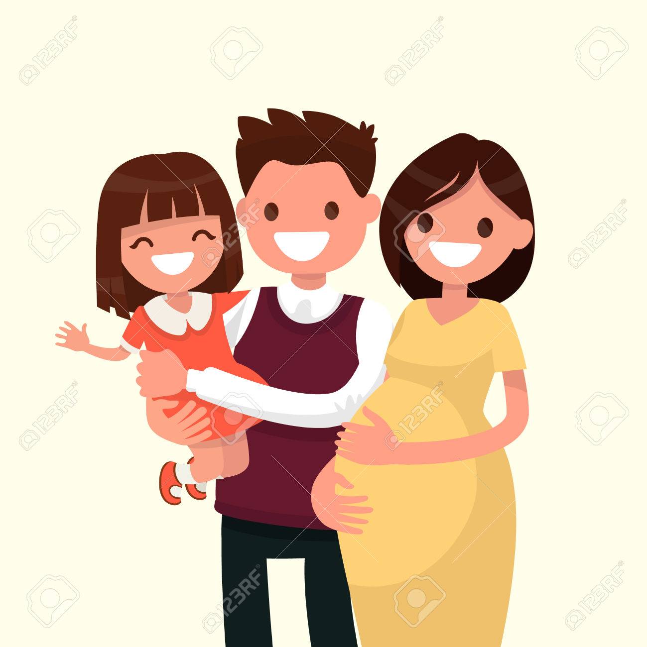 Vettoriale Ritratto Di Una Giovane Famiglia Felice Papa Figlia E Madre Incinta Illustrazione Vettoriale Di Un Design Piatto Image 69
