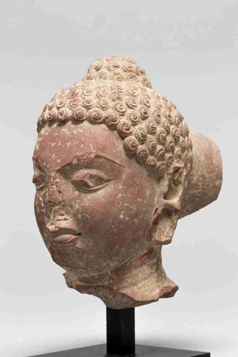 TESTA DI BUDDHA Il volto del Buddha ha un significato simbolico È rappresentato con capelli corti che si raccolgono a punta per dimostrare la sua rinuncia al passato privilegiato Gli occhi semichiusi lasciano intendere uno stato di meditazione guardano verso l’interno e verso l’esterno. Il Bodhisattva è il significato di coloro che perseguono la formazione mentre cercano il tirocinante Buddha (come un Tathagata) Tecnica per ritagliare la parte principale del corpo di testa di Buddha da un unico legno Nel caso di aggiungere le mani, i piedi, le parti libere del paradiso ecc, Se la parte principale del corpo della testa. Testa di Buddha con grandi occhi sporgenti e globulari, allungati e socchiusi Le palpebre, sia quelle superiori sia quelle inferiori, sono carnose e prominenti Le sopracciglia sono raffigurate ad arco ribassato e si discostano in modo sensibile dall’orbita oculare Il naso presenta una sensibile curvatura verso la guancia destra Il viso è largo, di forma lievemente quadrangolare, con un.
