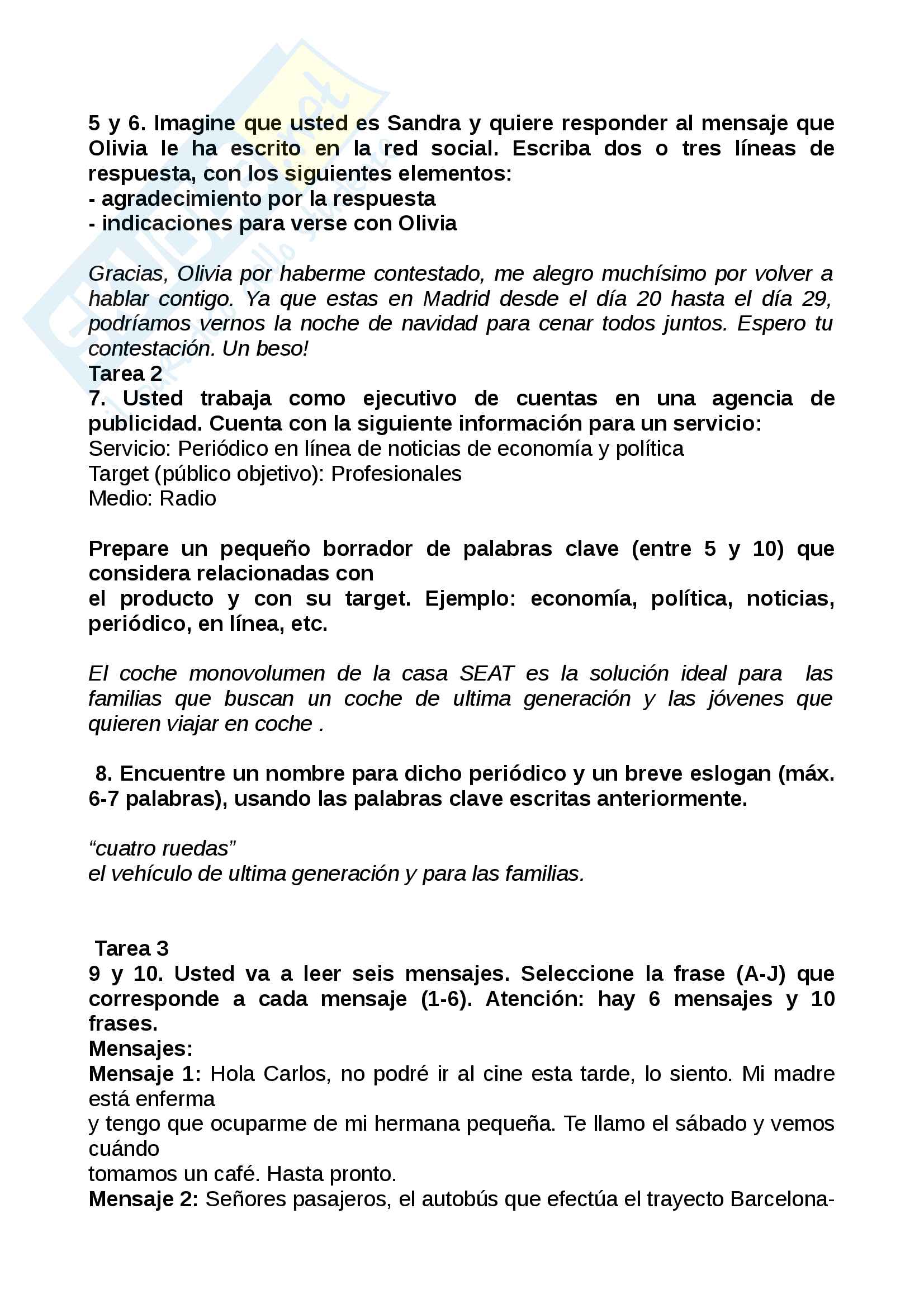 Esercitazione Esame B2 Spagnolo