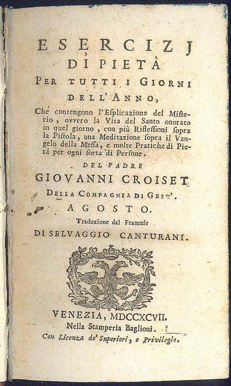 Esercizi Di Pieta Per Tutti I Giorni Dell Anno Agosto Jean Croiset Libro Usato Stamperia Baglioni Ibs