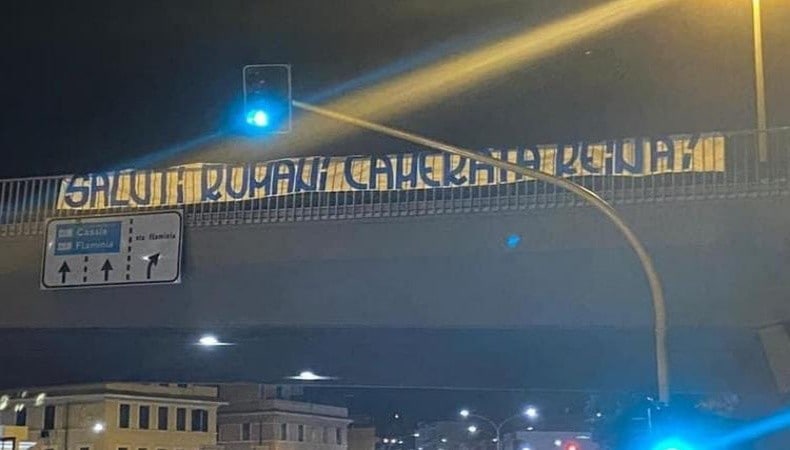 Lazio Striscione Shock Benvenuto Camerata Reina