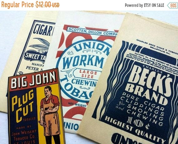 Four Vintage Tobacco Bags And Label Cigar Clippings Bags Etsy