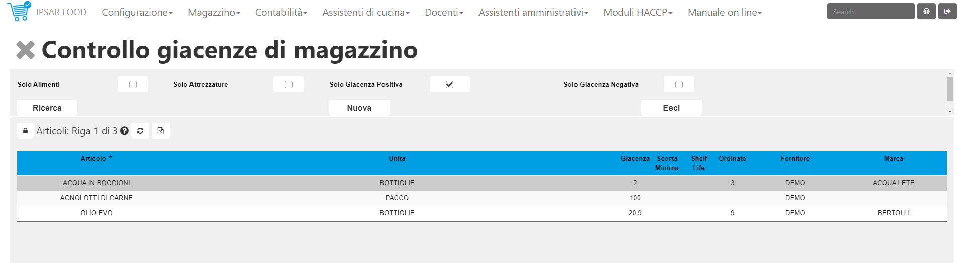 Giacenze Magazzino