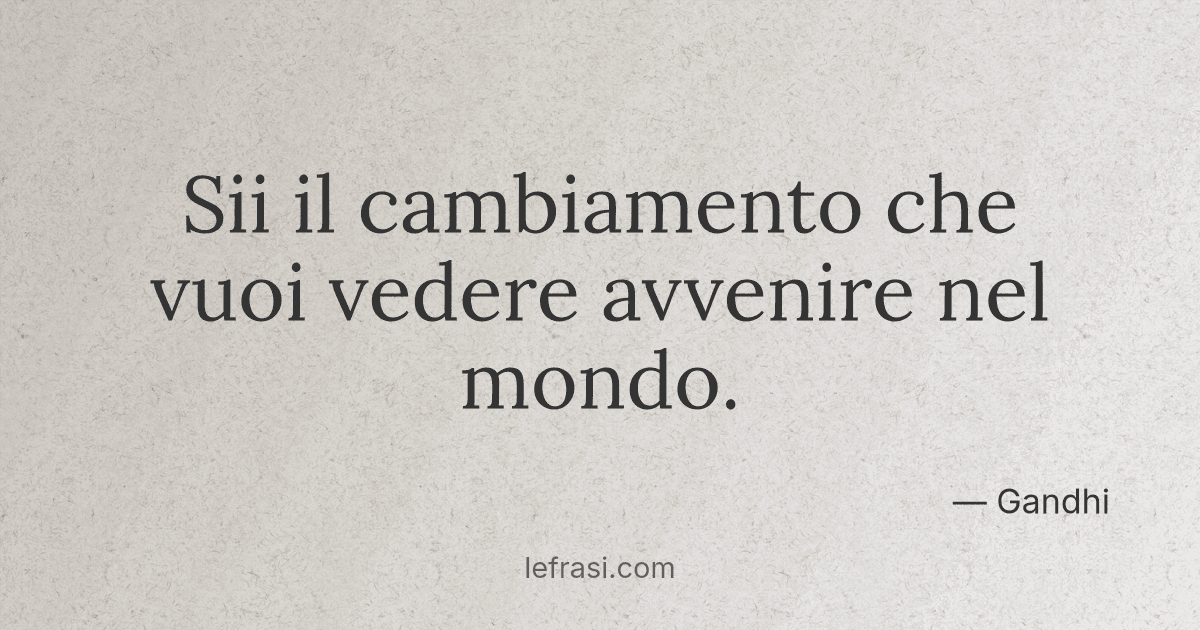 Gandhi "Sii tu il cambiamento che vuoi vedere nel mondo" Con lui gli sconfitti vinsero e anche noi oggi possiamo fare lo stesso, tutti insieme 31 gennaio 18 Alessandro Marescotti Gandhi "Sii tu il cambiamento che vuoi vedere nel mondo" Autore PeaceLink Chiudi Nel 1948 veniva assassinato Gandhi Lo vogliano ricordare rievocando un. Ormai abbiamo capito che ogni vero cambiamento può solo partire dall'interno di noi stessi approfondiamo ancora di più questo millenario insegnamento, impar. “sii il cambiamento che vuoi vedere nel mondo” Abbiamo perso il concorso per il quale è stata scritta questa storia ma vale la pena raccontarla lo stesso Prima non ci credevo Ma ora lo so Ognuno di noi può fare la differenza L’azione.
