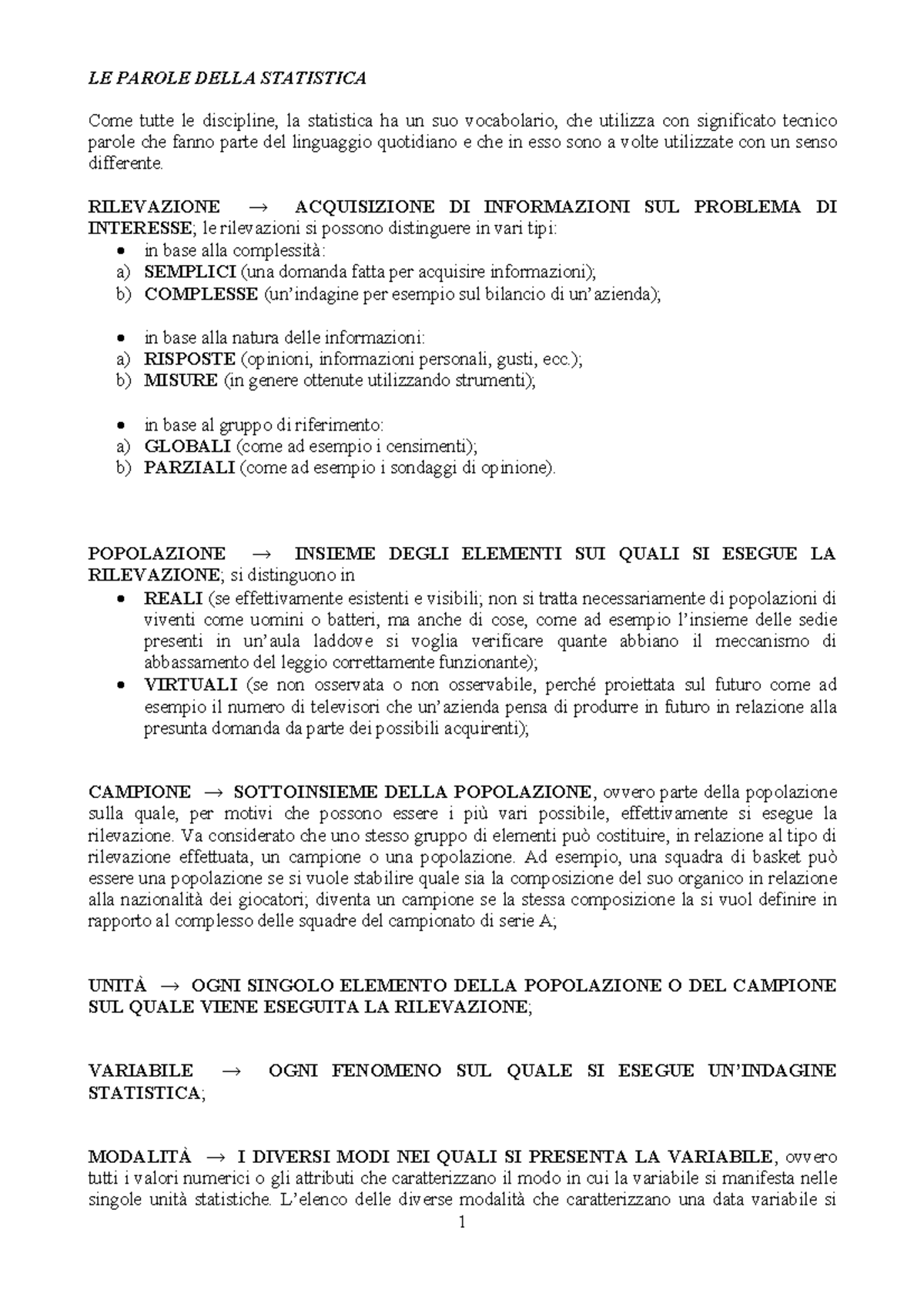 Le Parole Della Statistica 1742 Studocu