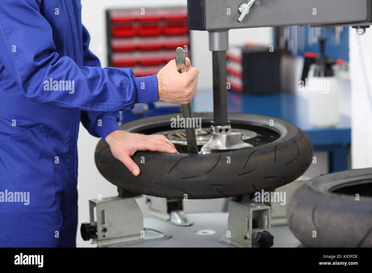 Moto Meccanico Di Smontaggio Di Un Pneumatico Vecchio In Una Officina Meccanica Foto Stock Alamy