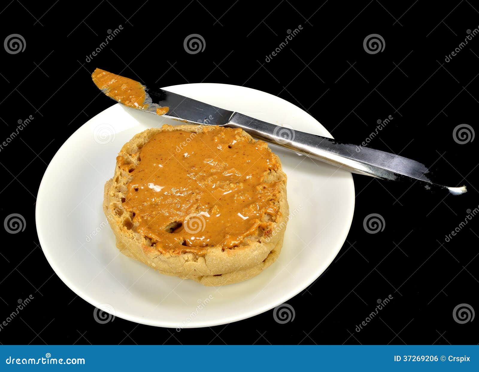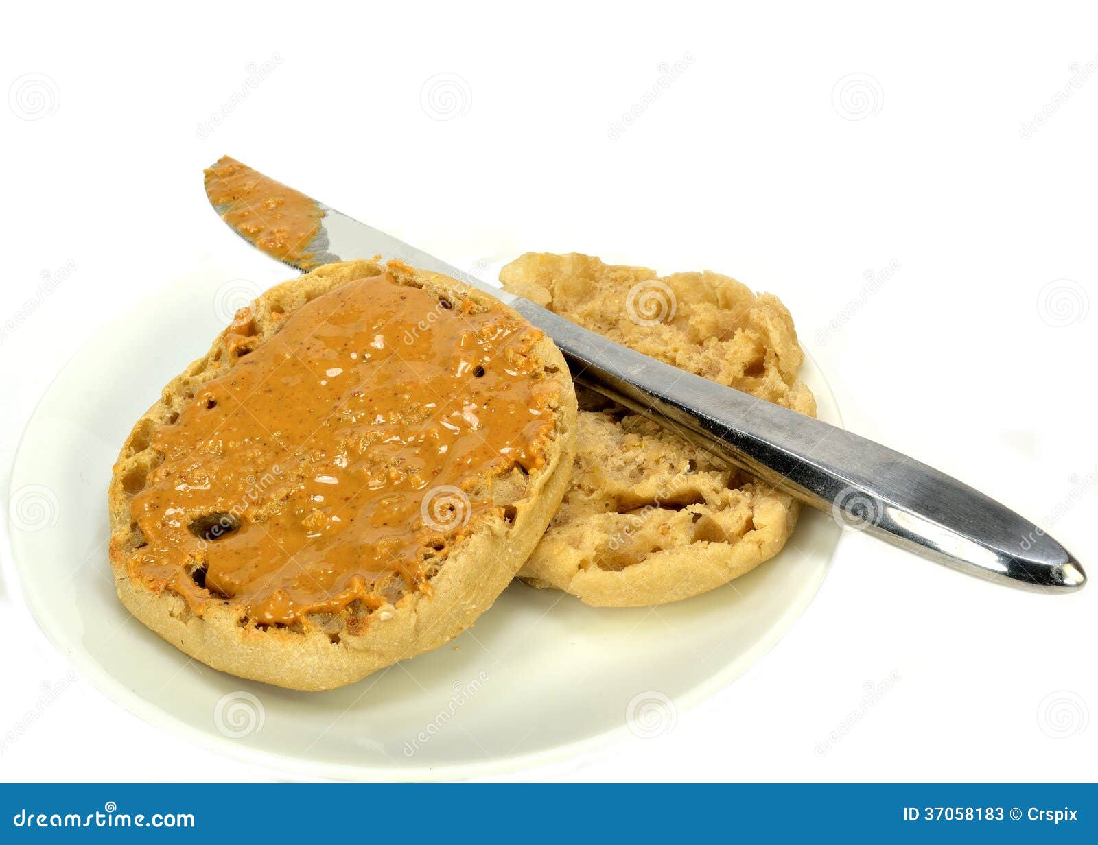 Muffin Inglese Con Burro Di Arachidi Fotografia Stock Immagine Di Singolo Frumento