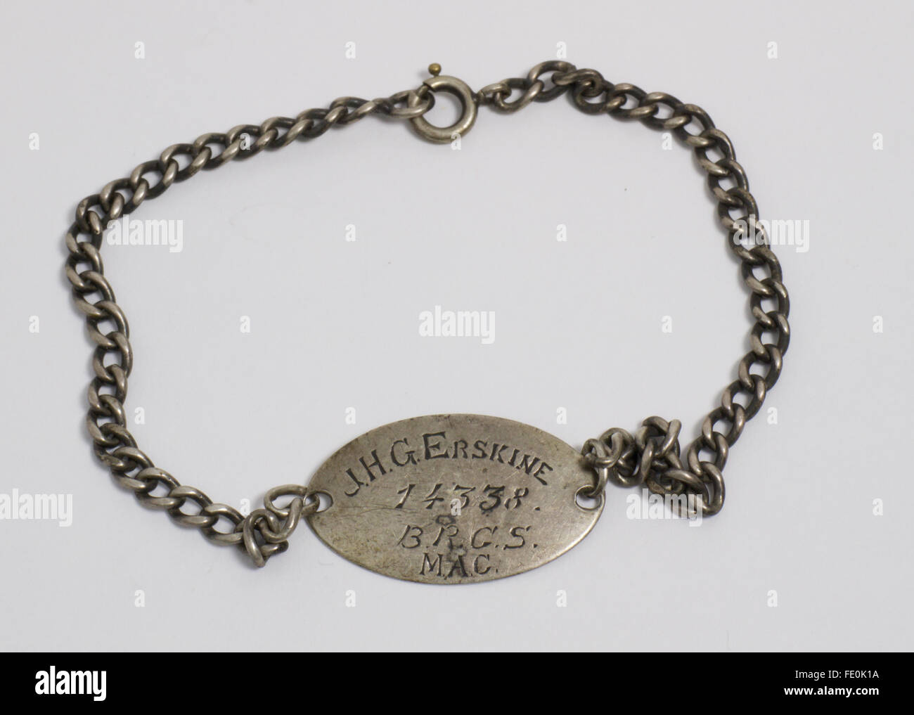 Ww1 Braccialetto Identificativo La Placca Ovale E Incisa La Scritta J H G Erskine B R G S Mac La Retromarcia Con Etaples Il Braccialetto Mostra Foto Stock Alamy