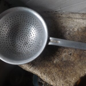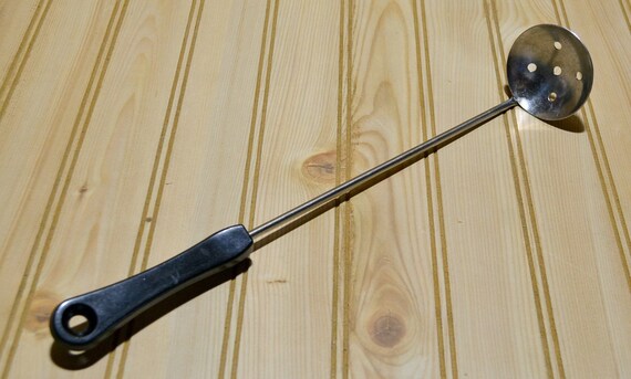 Vintage Slotted Metal Strainer Ladle Long Black Handle Kitchen Etsy