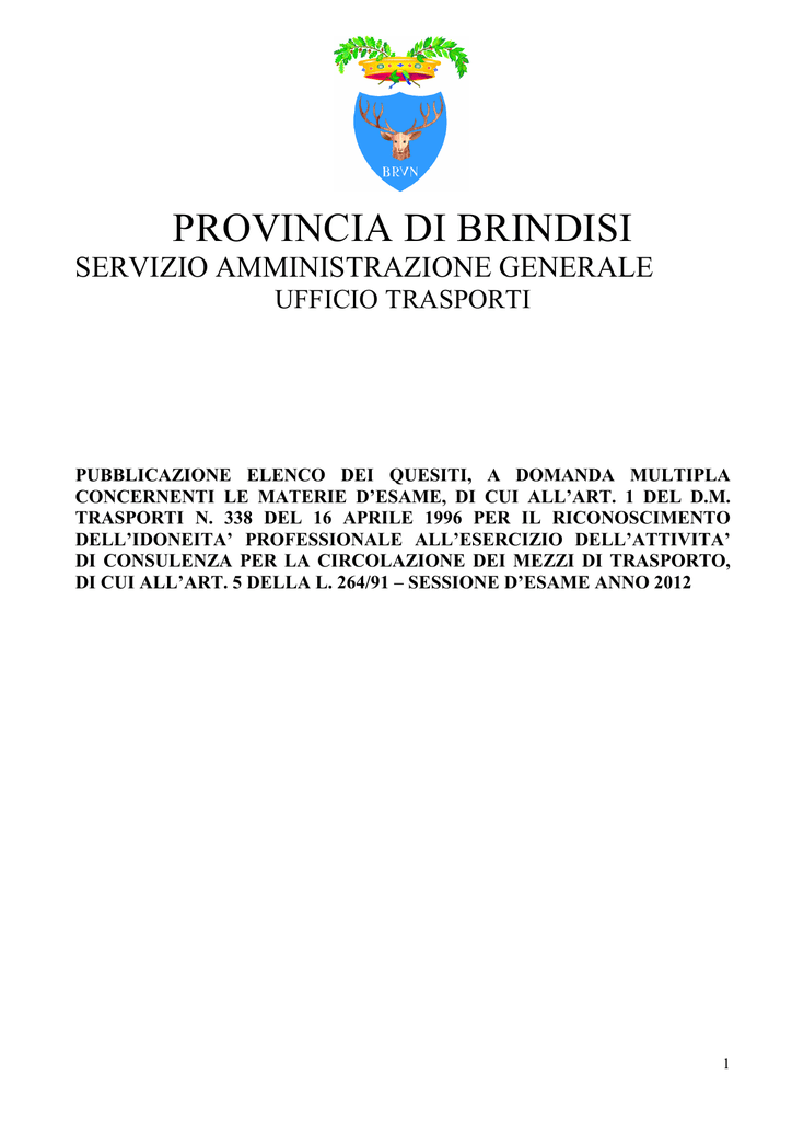 Quiz Da Pubblicare Provincia Di Brindisi Manualzz