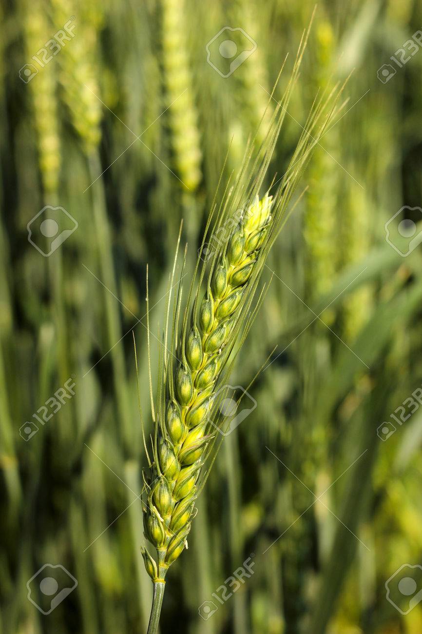 Immagini Stock Primo Piano Della Spiga Di Grano Verde Con Profondita Di Campo Image
