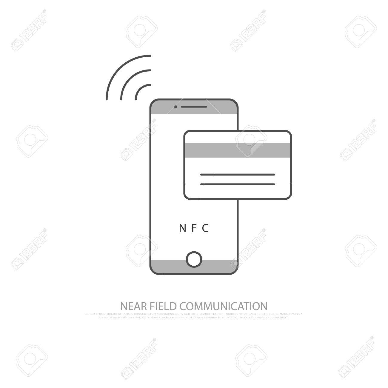 Concepto De Pago De Tecnologia Nfc Icono De Vector De Banca Movil Y E Commerce Transferencia De Dinero Sin Contacto Transaccion Inalambrica Con Tarjeta De Credito Bancaria Pos Terminal Y Telefonos Inteligentes Iconos