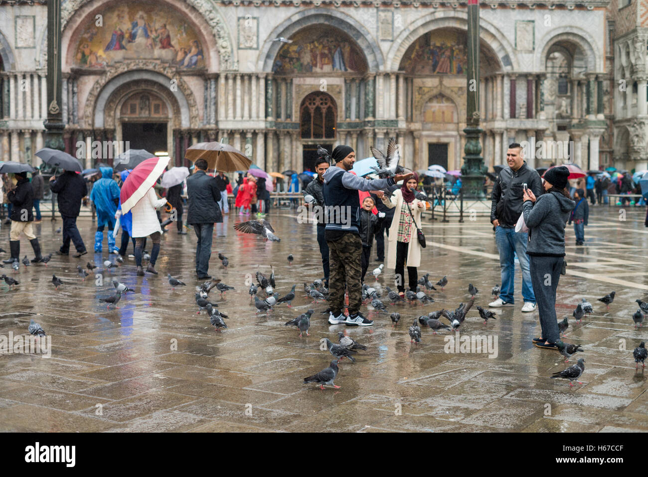 Pigeons Sur Le Trottoir Dans La Place Saint Marc Pluie Venise Italie Photographie De Stock Masterfile Rights Managed Artiste Pierre Arsenault Code 700