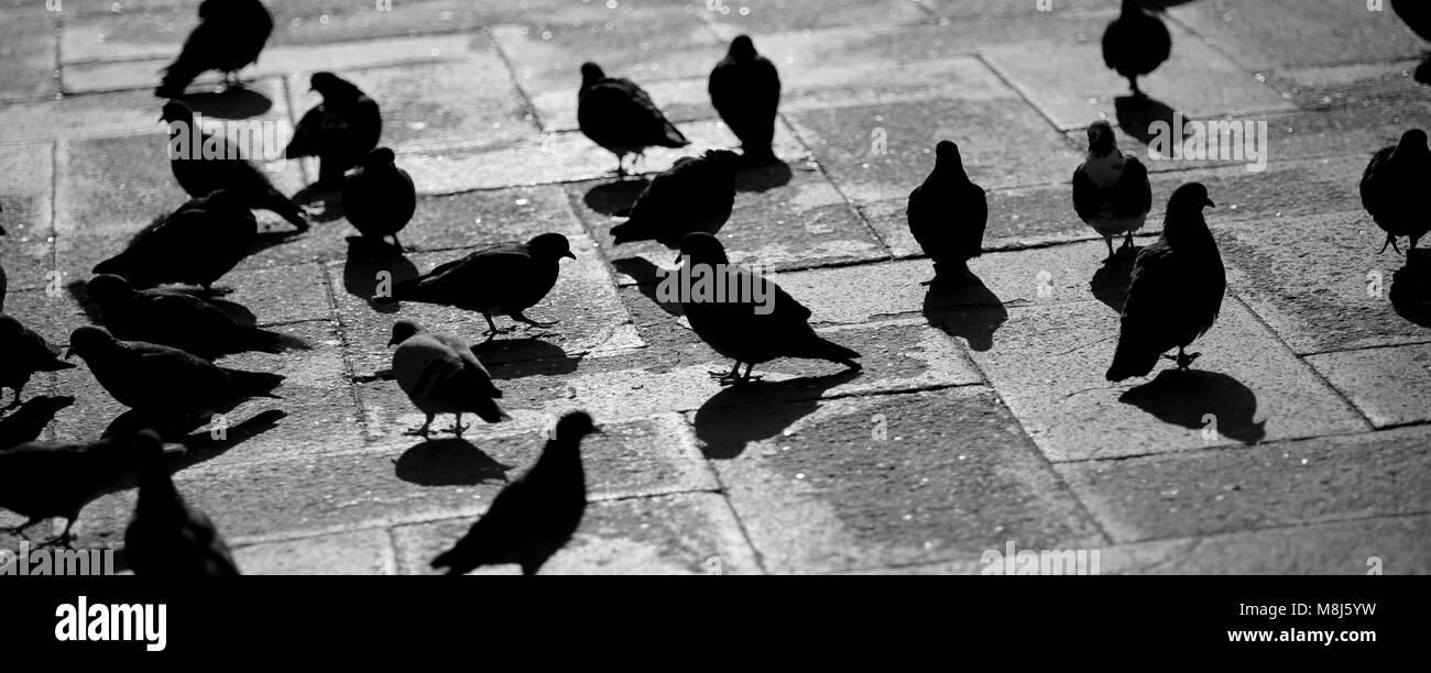 Les Pigeons De La Place Saint Marc A Venise Italie Avec Effet Noir Et Blanc Photo Stock Alamy
