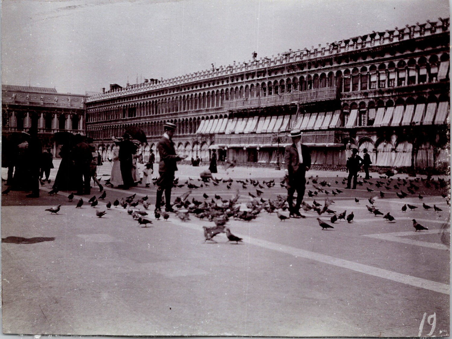 Touristes Nourrissant Des Pigeons Place Saint Marc Venise 1906 Archives De Montreal