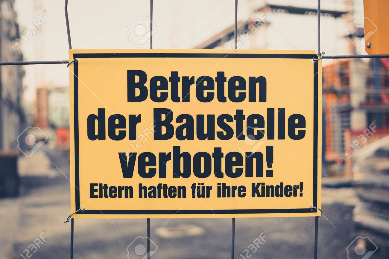 Immagini Stock Segno Giallo In Inglese E Vietato Entrare Nel Cantiere I Genitori Sono Responsabili Per I Loro Figli Traduzione Accesso Vietato Al Cantiere I Genitori Sono Responsabili Per I Loro