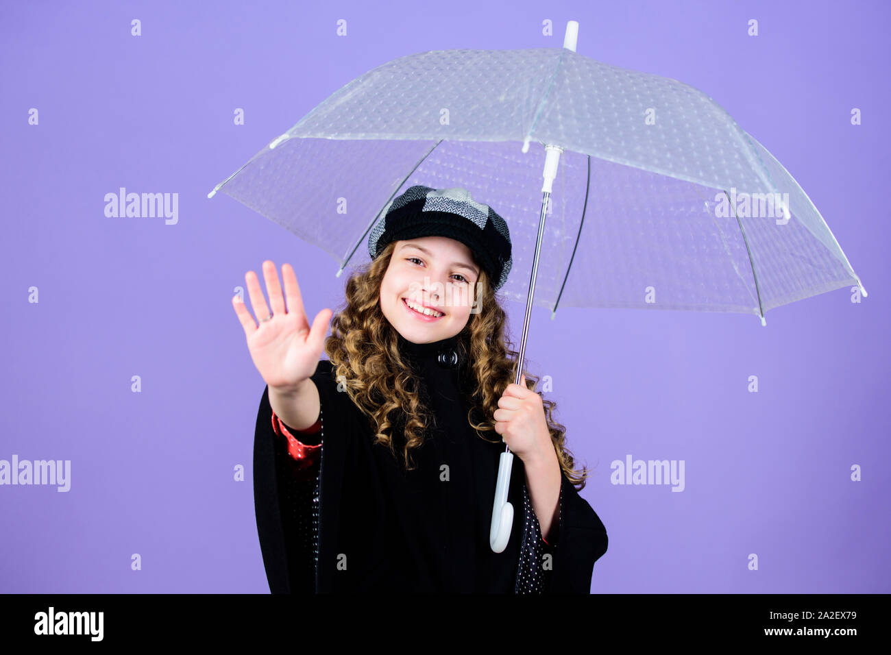 Bellezza Alla Moda Protezione Contro La Pioggia Rainbow Piccolo Felice Ragazza Con Ombrello Trasparente Autunno Moda Bambina In Francese Berretto E Cappotto Allegro H Foto Stock Alamy