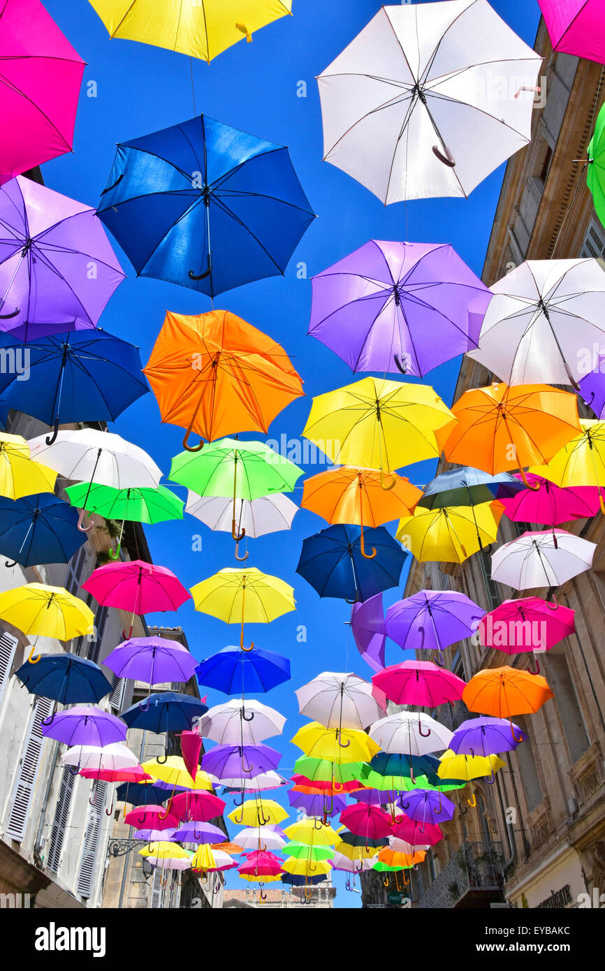 Blu Cielo Ombrello Ombrello Colori In Esposizione Di Arte Di Strada Nella Citta Francese Antica Di Arles Francia Provenza Foto Stock Alamy