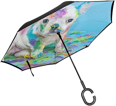 Ombrello Rovesciato A Doppio Strato Con Impugnatura A Forma Di C Cattivo Bulldog Francese Amazon It Valigeria