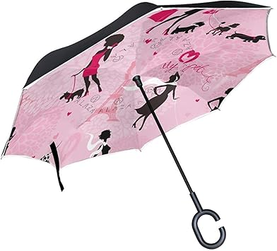 Cane Bassotto Di Stile Francese Parigi Torre Eiffel Ombrello Rovesciato Rosa Ombrello Reversibile Doppio Strato Grande Amazon It Valigeria
