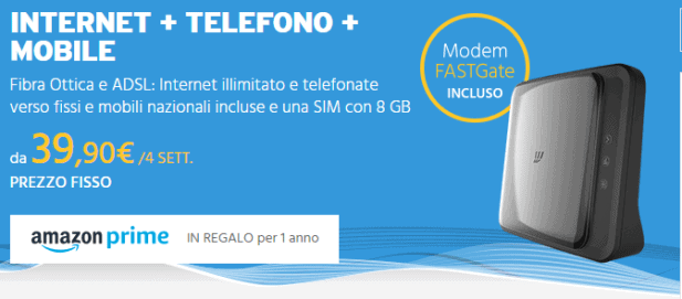 Tiscali propone ai suoi clienti alcune diverse offerte ADSL che possono rientrare nella definizione della promozione Tutto Incluso, con chiamate illimitate e internet compresi nel prezzo Così come visto nel caso dell’ADSL di Telecom Italia, le diverse opzioni proposte si differenziano non solo nel prezzo, ma in quanto effettivamente offerto al potenziale nuovo cliente. Con la presentazione del nono appuntamento della strategia #nientecomeprima di Fastweb, in cui è stata annunciata la nuova area clienti MyFastweb e la relativa assistenza dedicata, sono state anche lanciate le nuove offerte di rete fissa e di rete mobile, che hanno sostituito del tutto quelle precedenti Fastweb Casa In particolare, la nuova offerta dedicata alla linea fissa di Fastweb è. Modem FASTGate con WiFI super potente;.
