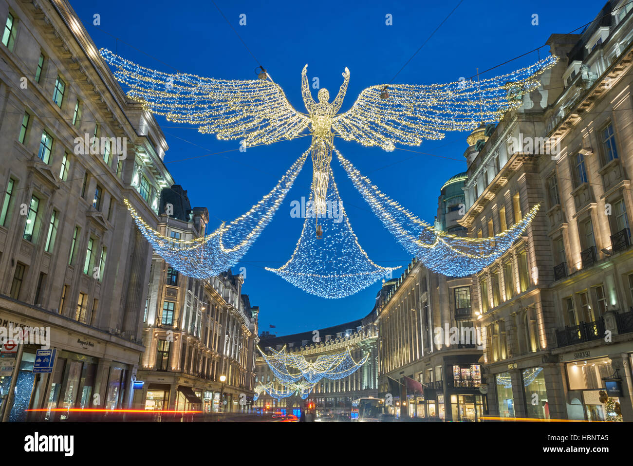 Christmas Lights On Regents Street In The Form Of Angels Regents Street Is The Main Shopping Venue In London Outdoor Christmas London Christmas Christmas Town