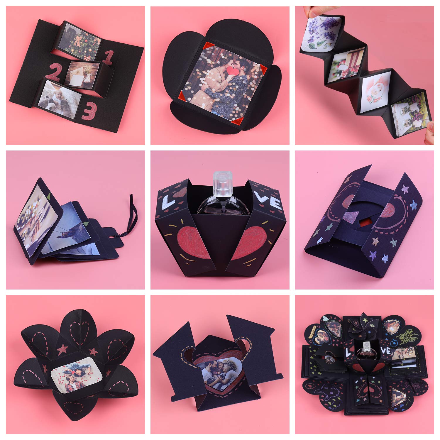 Vegena Scatola Di Esplosione Explosion Box Scrapbook Creative Diy Photo Album Regalo Perfetto Sorprese Romantiche Idee Regalo Per Anniversario Compleanno San Valentino Nero Amazon It Casa E Cucina