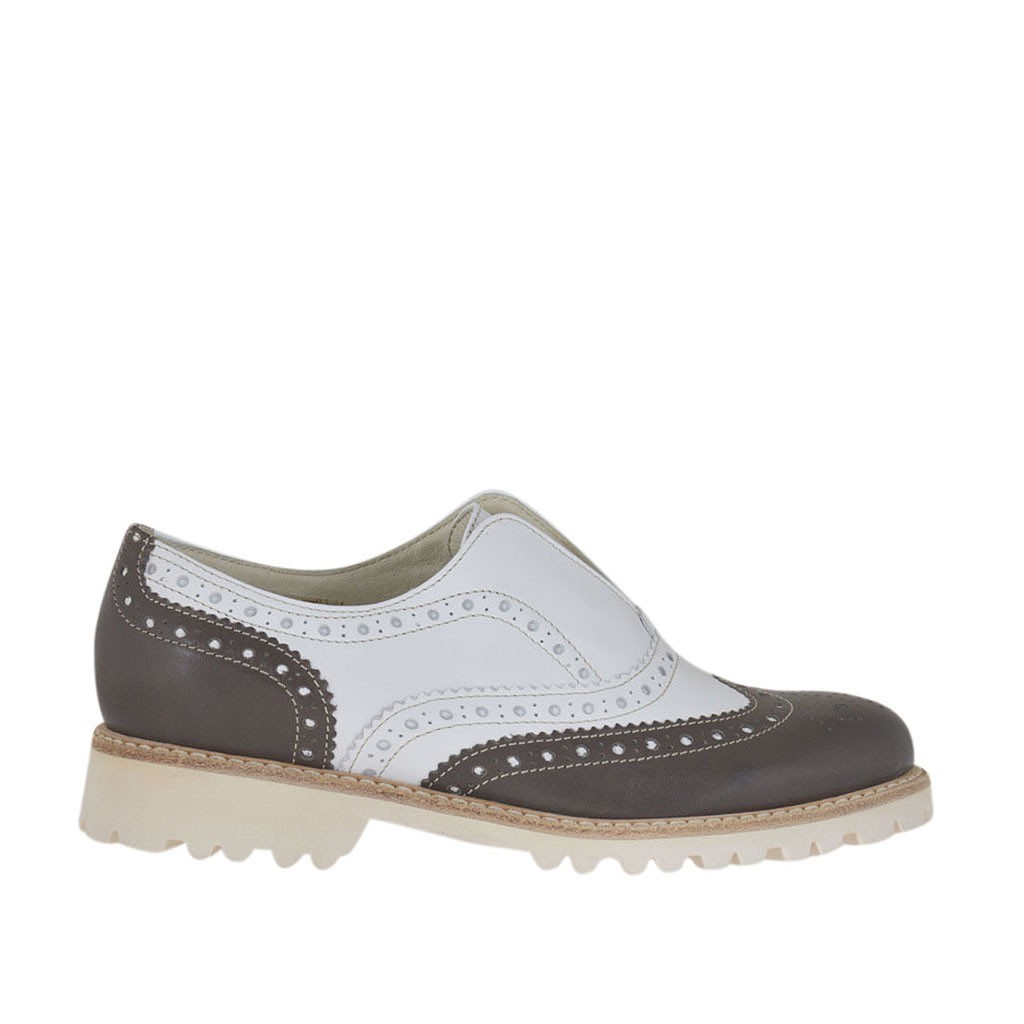 Scarpa Stile Inglese Da Donna Con Elastico In Pelle Marrone E Bianca Tacco 2 5