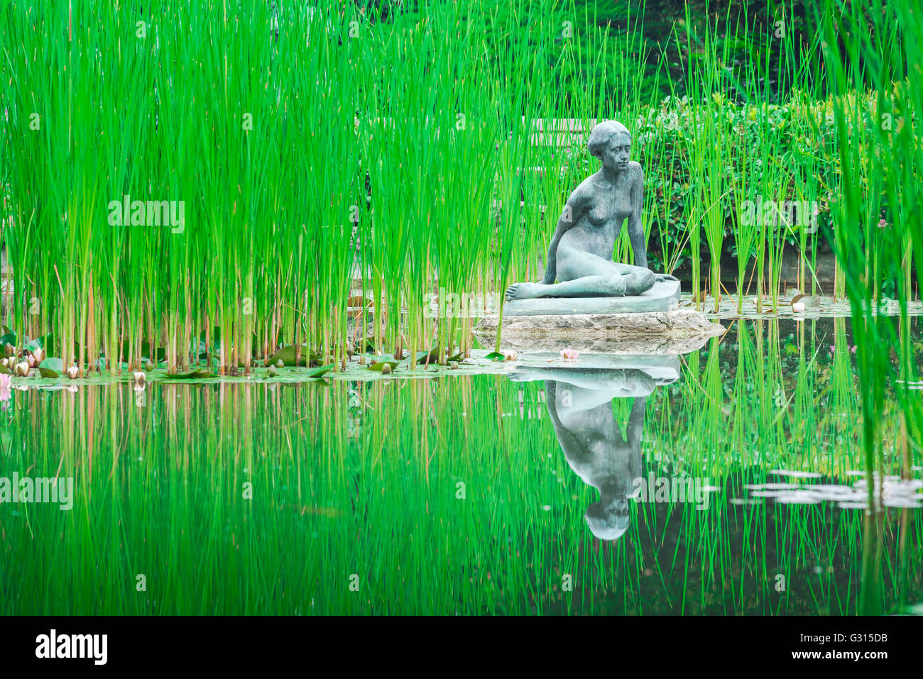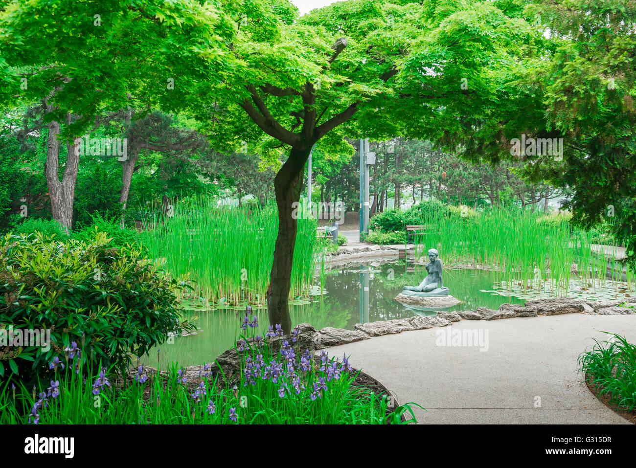 Una Statua In Un Giglio Stagno Nel Giardino Giapponese Sul Margit Sziget Island L Isola Margherita Di Budapest Ungheria Foto Stock Alamy