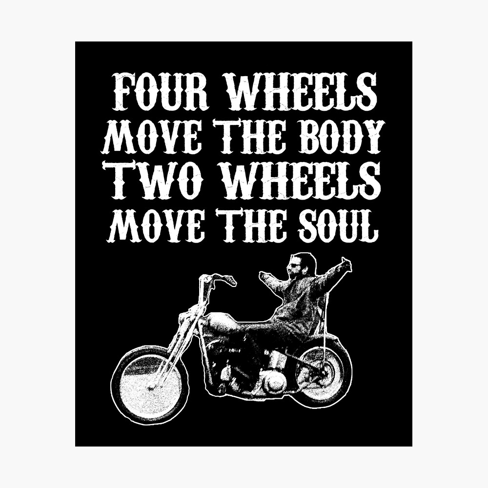 TwoWheels – Two wheels move the soul Why we shouldn’t write off the old school pen and paper approach Nov 16, 18 by Tim Anderson Let me open this by saying that I work in the technology field and I carry my laptop with me everywhere and to every meeting. Honda Cafe Racer – Two Wheels Move The Soul “Four Wheels Move the Body, Two Wheels Move the Soul” Motorcycle Print with a silhouette of a Honda CB550 Cafe Racer This high quality 11″ x 17″ print on 12pt coated white card stock looks stunning when framed or simply pinned to you garage wall. May 31, 18 Explore Tara Mack's board "4 wheels move the body 2 wheels move the soul" on See more ideas about biker quotes, motorcycle quotes, biker life.