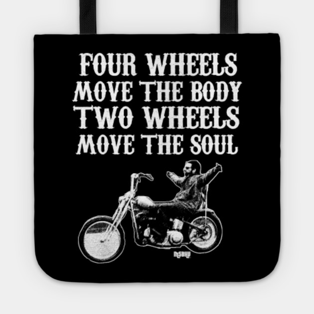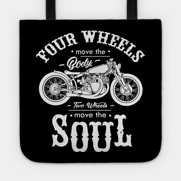 Four Wheel Move The Body Two Wheels Move The Soul Biker Quotes Tragetasche Teepublic De
