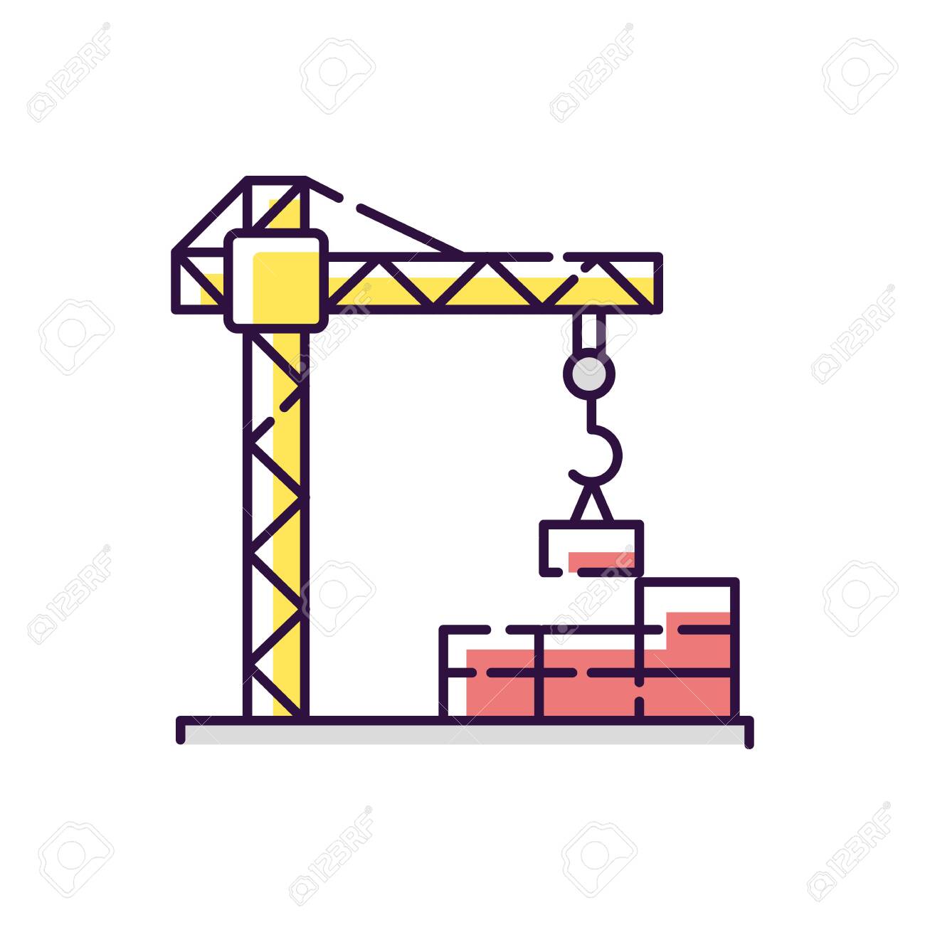 Construction Site Rgb Color Icon Crane For Building And Lifting Royalty Free Cliparts Vectors And Stock Illustration Image